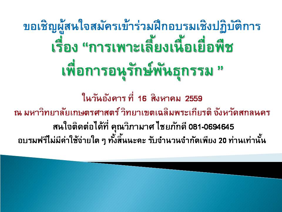 ขอเชิญร่วมฟังการบรรยายพิเศษเรื่อง แนวทางการพัฒนางานวิจัยด้านเห็ด (107) 2018-01-31 09:25:46 |